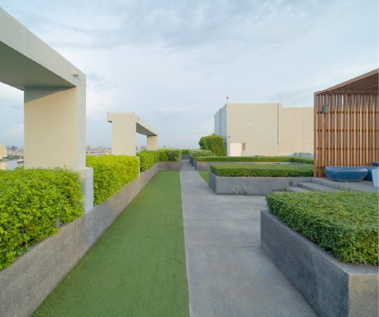S.S. railing and toughened glass fittings for the sit-out areas.
