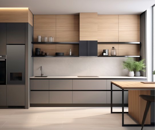 Main door with panelling in melamine-finished veneer, fitted with Godrej or any equivalent company’s digital locking system.